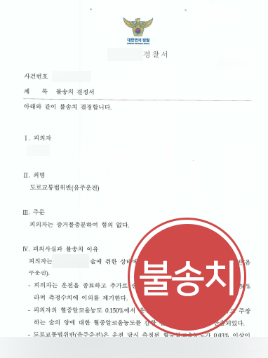 위드마크 공식을 활용하여 운전 당시의 음주 수치가 처벌 기준치를 초과하지 않는다는 점을 강조한 덕분에 의뢰인은 불송치 결정을 받을 수 있었는데요.